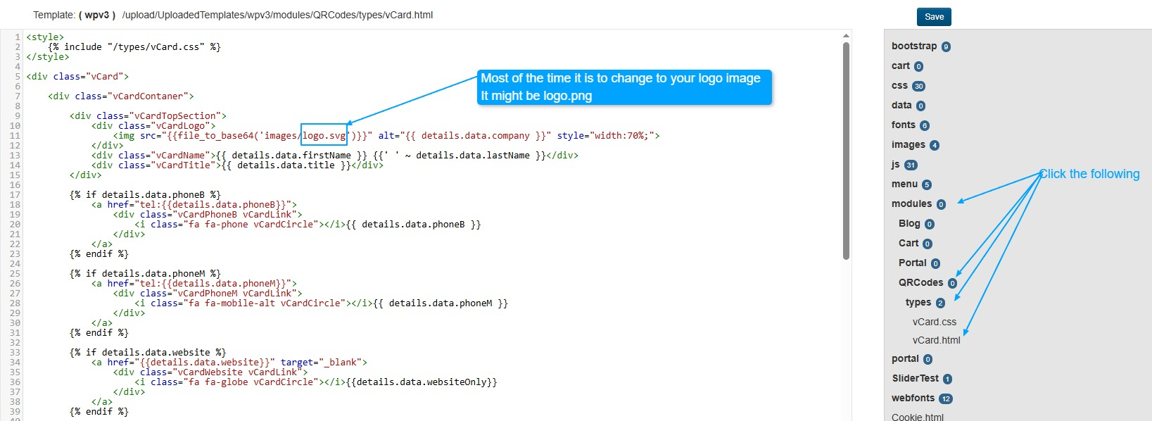 Once opened, click on the menu on the right side to navigate to the file you want to customise.