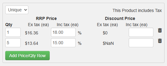 To add a Price or Break point, click on the Green Button "Add Price/Qty Row"